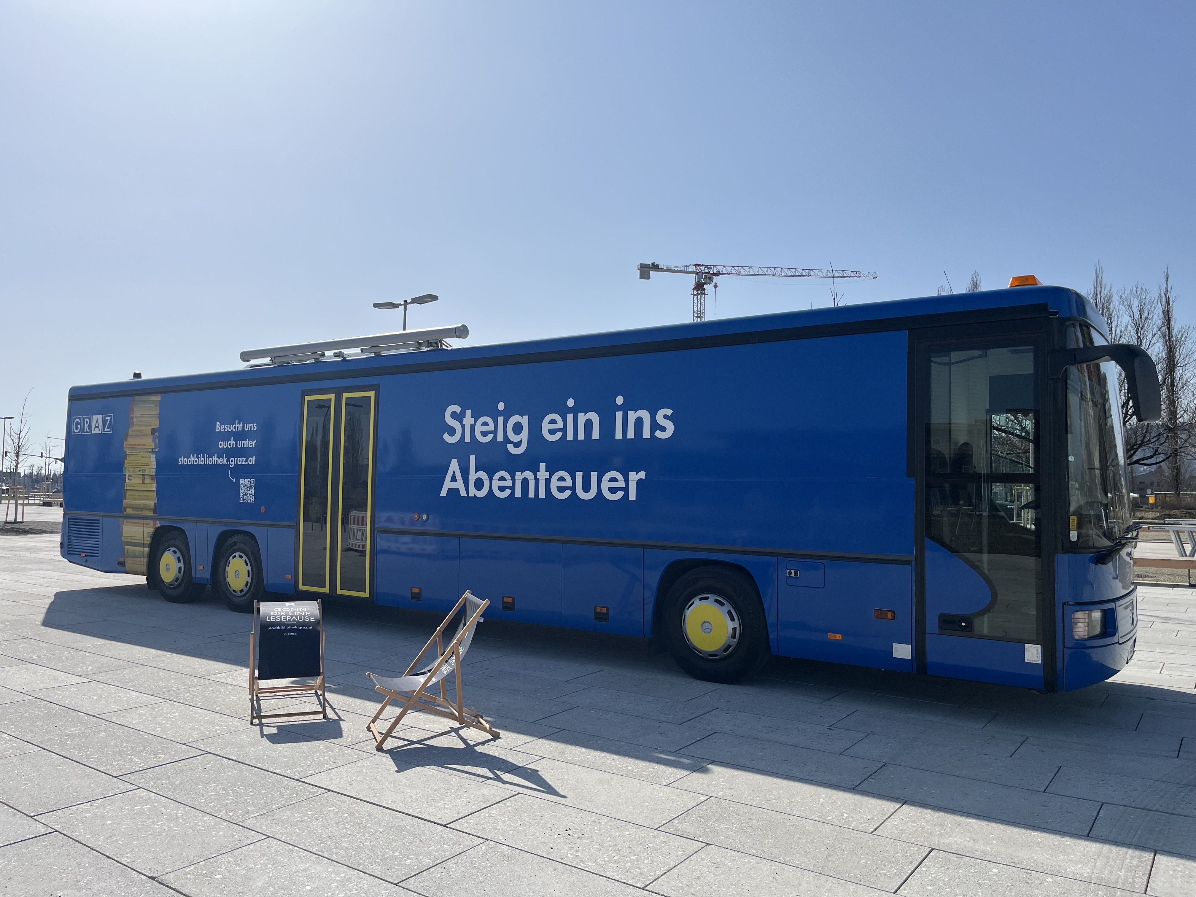ab 6. März fährt der Bücherbus zweimal im Monat die neue Haltestelle am Reininghausplatz vor der VS und AHS Reininghaus an!