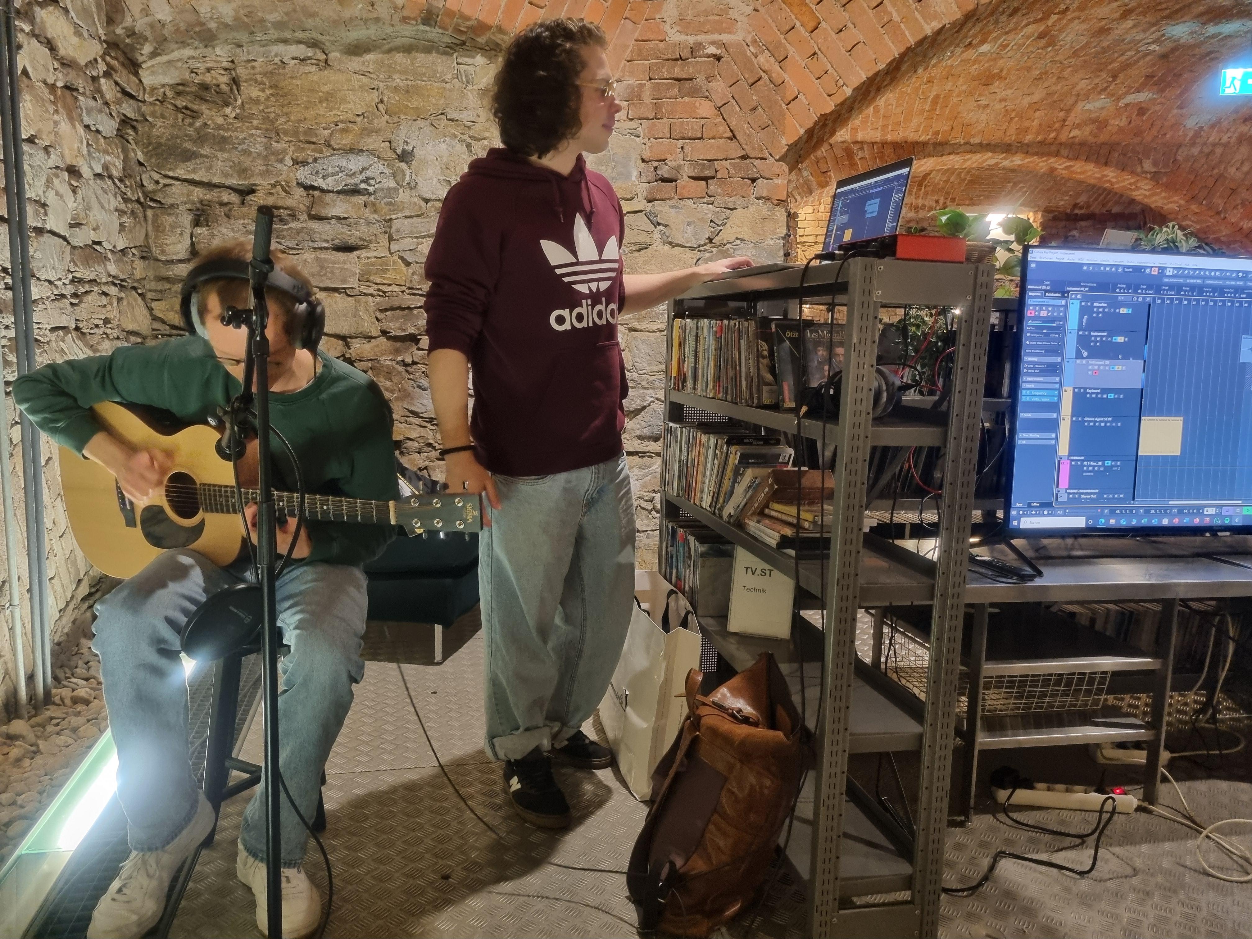 Boris und Alex arbeiten schon lange mit Aufnahmetechniken, dem Schreiben von Songtexten und der Aufnahme von Instrumenten. Im Workshop erklären sie die Basics der Arbeit in einem Tonstudio.